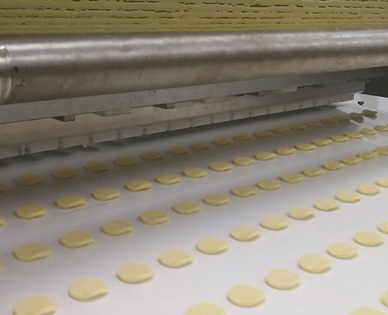 ♦ Avec une bande de toile sans fin, une connexion sans soudure, un meilleur effet de moulage des biscuits ;