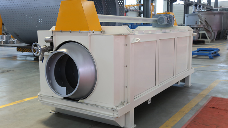 Le pulpeur à tambour se compose de deux groupes : la partie rotative et le système d’entraînement. La partie rotative est composée de la section de mélange, de la section de réduction en pâte et de la section de criblage. Le système d’entraînement est composé des rouleaux de support, du dispositif de transmission et de l’unité de lubrification.